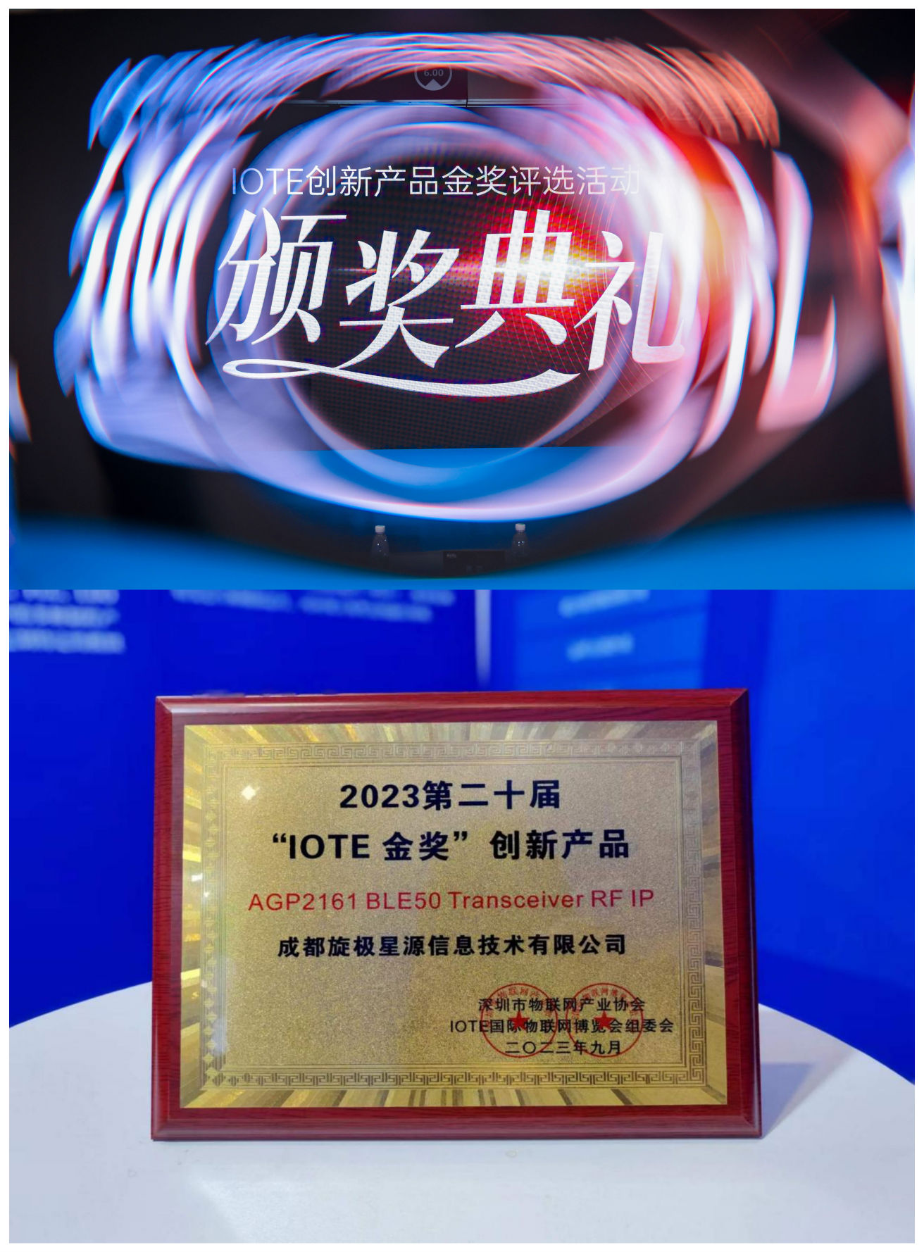 9月20日-22日,IOTE 2023第二十屆國際物聯(lián)網展于深圳國際會展中心(寶安)圓滿舉行,與會展同期舉辦的IOTE“金獎”頒獎典禮中,旋極星源推出的AGP2161 BLE50 Transceiver RF IP榮獲2023“IOTE金獎”。
